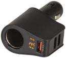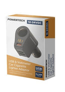 Powertech Car Cigarette Lighter Adaptor with 3 USB Charging Ports Voltmeter
