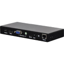 Ideal for use in educational or boardroom environments, this handy converter box provides connection for devices with VGA/3.5mm audio, USB-C, Mini DisplayPort and HDMI connections and outputs to a HDMI equipped projector or display. Supplied with brackets for mounting under a desk/table, providing a neat finish to the installation. Input signal is automatically detected, switching to the active signal without the need to press a button.Max output resolution 4K @ 60Hz. Ethernet pass through in-built. Includes power supply. Size: 179W x 24H x 72Dmm.