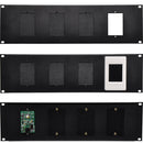 This 3RU plate provides mounting for up to 4 standard electrical wall plates. This allows installers to mount zone control wall plates into a rack environment. Supplied with three blanking plates...