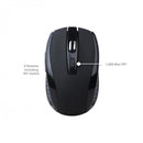 • The slim keyboard and mouse share a single USB dongle that has to be connected to the computer to enable hassle-free wireless use and both the keyboard and the mouse run on 2 x AAA batteries each. The black keyboard has a US standard layout with a 104-slim chocolate key design. The black colored wireless mouse comes with standard left-click, right-click and scroll + click options. Additionally, the mouse has forward and backward buttons on the left side. Extra DPI selector buttons with 800/1200/1600 options give users the option to regulate the speed of on-screen movements of the mouse as well.