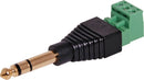 A 6.35mm Stereo plug with a removable 2.54mm pitch 3 way screw terminal mounted on the rear. Perfect for when there is no soldering iron handy.