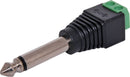 A 6.35mm monoo plug with a removable 2.54mm pitch 2 way screw terminal mounted on the rear. Perfect for when there is no soldering iron handy.