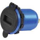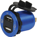 p>Offers QuickCharge 3.0 compatibility from both ports. Stylish blue aluminium finish with central LED volt meter. 29mm mounting hole. 30mm thread length.