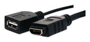 HDMI and USB type A connections fitted to a black Clipsal Pro Series wall plate which has been specifically designed for commercial building installations. HDMI high speed with Ethernet connection. Rear is fitted with 150mm fly leads with HDMI and USB type A socket for easy connection.
