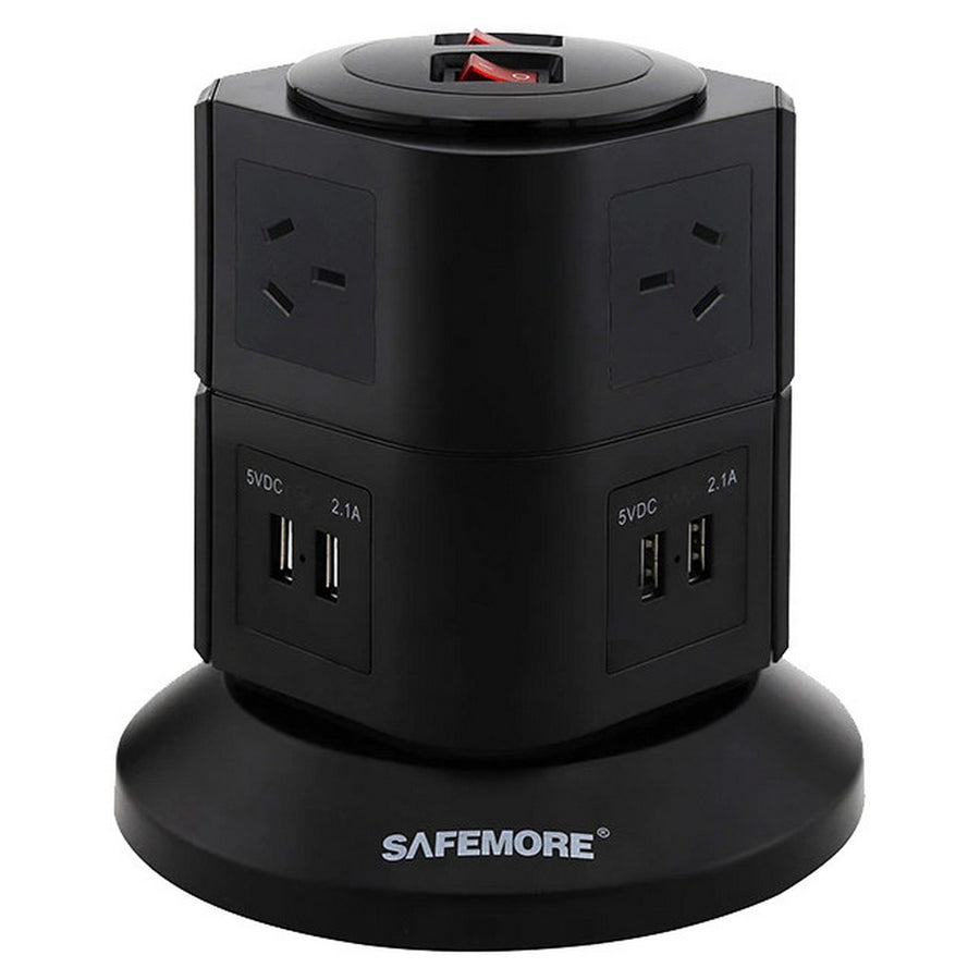 Safemore 6 Outlet Powerboard with 4 USB Ports BLACK
