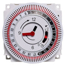 24 hour 240V mains operated ON/OFF timer. ON periods are set manually with the 15 minute increment tabs. Timer may be manually selected ON or OFF regardless of set time periods. Not suitable for use in direct sunlight. 6.3mm spade connections.