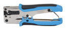 Compact pocket size design suitable for use with solid core “through wire” or open-pass modular crimp plugs. Crimps and trims ends in one motion. All steel design with comfortable rubberised grips.