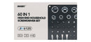 This Professional 60 Piece Driver and Socket Set is ideal for bicycle repair, model disassembly, home assembly, home appliance repair, mechanical maintenance and digital product disassembly. The set contains 47 kinds of matte, chrome-plated screwdriver bits and 9 kinds of matte, chrome plated sockets. The set is enclosed in a magnetic closed box keeping everything neat and tidy.
