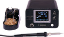 The high power T 2460A electronically temperature controlled soldering station with touchscreen incorporates a special intelligent chip microcomputer control design. It has been developed to meet the present and future Lead-free soldering needs of the electronic production industry and suitable for work on SMD electronics. The ergonomic handle with a short distance between heating element and tip allows very fast heat up time and quick heat dispersion. The sensor and heat transfer technology employed ensure precise temperature regulation that is essential for making consistent, reliable soldering connections. The temperature is maintained within +/-3°. The handle is fitted with a burn resistant rubber lead.