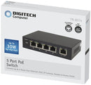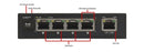 Power Over Ethernet (PoE) simplifies installation for IP cameras, telephones, routers, and other networking equipment. It reduces the need for mains power at each IP camera location, for instance, powering them from a central supply. It has 4 PoE ports and one uplink port with data and power transmission for distances up to 100m.