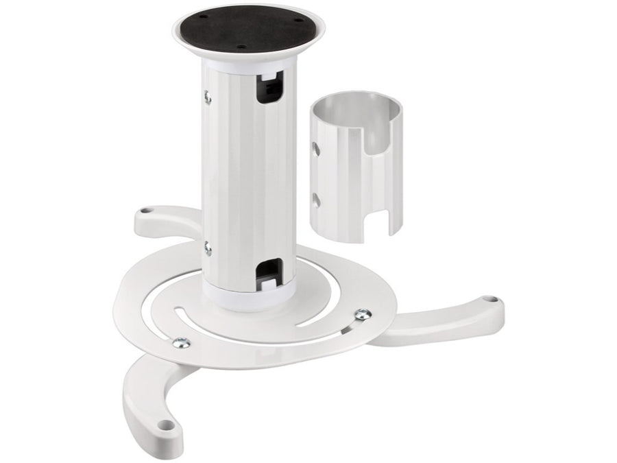 Overview:For small to medium-sized projectors fully movable (white) up to max. 10 kg ***RETAIL BOX*** Position your projector ideally both at home or in the office. In a place where it provides the perfect home cinema experience without interfering - on the ceiling.|Features:The distance to the ceiling can be adjusted via the two mounting pipes (130 mm or 200 mm) included in the delivery The ceiling bracket can be tilted up to 15° and rotated by 360° The projector can easily be adjusted via the integrated axle joint even after installation The internal cable routing ensures a tidy appearance https://www.youtube.com/watch?v=Y43LOTcfqgU&t=29s|Tech Specs:Maximum load - 10 kg Height adjustment - 0 Wall distance - 130 - 200 -Dimensions / Weight- Width - 178 mm Height - 320 mm Depth - 200 mm Weight - 1100 g|