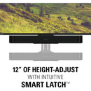 The 12” of height adjustment ensures an ideal fit between Beam and the bottom of your mounted TV for a clean, streamlined look, and the intuitive Smart Latch™ allows for speaker height adjustment with just the lift of a finger – no tools required.
