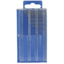 20 micro drills in indexing storage case, ideal for drilling wood, composites, plastic or soft metals. Indexed case enables removal of the bit you want without the risk of spilling them all over the place, because if you do, dang they'll be hard to find later!