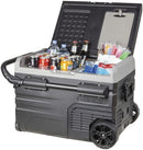 This 35L fridge/freezer has facility to contain a back up power battery for continuous operation (sold separately). It is lightweight and has sturdy wheels and telescopic handles to help transport it between the car, boat, campsite, etc. It features separate freezer and fridge zones with LCD controls, an inner LED to help you find what you’re looking for in the dark, and Bluetooth connectivity to operate it from your Smartphone. Use the built in USB charging port to keep your mobile device topped-up while on your outdoor adventures. The high performance 45W compressor provides cooling down to -20°C and is super quiet (less than 38dB!).