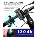 - Powerful Light Beam: Provides ultra- strong beam shoot with two T6 double lamp beads, and it has 6 lighting modes. 5 HORN SOUNDS: with the 120db loud horn has 5 sounds modes selected, can be heard from a very far distance.