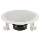 These ceiling speakers are a 2 way speaker design giving excellent audio quality compared to traditional PA speakers. Combining a coaxial woofer with dome tweeter they are available in three sizes to cover a variety of domestic and commercial applications. Two of the models also have adjustable tweeter mounts making them ideal when used in a home theatre setup by allowing you to direct high frequencies towards the centre of a room. The flush mount design and fold out retaining clamps allow them to be easily installed in new or existing ceilings, and the matte white finish blends in with most ceiling colours.