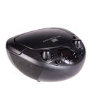 •  Portable CD boombox with AM/FM radio