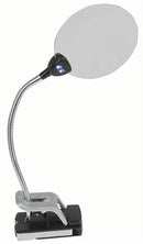 The 2X main lens and 5X insert lens with the bonus of 2 LED lights, is a welcome addition for any hobbyist. The magnifier is clip-on or free standing. Suitable for most flat surfaces or workplace incline up to 38mm thick. The flexible metal arm ensures that you can position the magnifier just where it's needed. This handy magnifier also comes with a soft protective pouch for your lens to protect it from dirt and dust. It also has metal stablisers to ensure that your magnifier remains stable while working. .Includes protective lens pouch