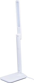 This stylish LED lamp with touch dimming provides light while you work for your desk. The base is fitted with a wireless charger providing a convenient way to keep your phone charged. Compatible with phones fitted with Qi wireless charging receivers. USB connection in base provides an easy way to keep secondary devices charged. Powered by standard USB wall charger (2A minimum). Size: 130W x 320H x 330Dmm.
