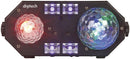 Adding spectacular lighting effects to your next disco or party could not be easier thanks to this 5-in-1 party light. It features one magic ball with bright 3W RGB LEDs for amazing colours, a 5W LED for a mesmerising water wave effect, four 2-in-1 LEDs to create strobing white or glowing ultravoilet effects, and bright red and green lasers. The lighting effects can be set for automatic operation, triggered by the beat of the music playing, via DMX control, master/slave, or from the included remote control. A great solution that can save you from buying and setting up multiple party lights to generate the same effects. Supplied with a mains power cable and mounting bracket.