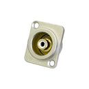 RCA D Shell Socket Stylish Design Flexible gormmet cable protection Robust diecast shell Gold plated contacts Great solderability Quick and easy assembly Panel mount utilises standard 'D' type housing RCA...