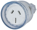Clear extension 15A socket with a flexible PVC cover giving complete visibility to screw terminals. Features a cord locking nut and screwed clamp terminals. Useful for 3 core 1.5mm square millimetre ordinary and heavy duty flexible cords.