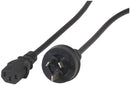 Ideal for multiple monitors, computers, servers, and so much more. The lead is 1.8m overall, but at the half-way point it splits into three, to provide three IEC power plugs. Drastically reduces powerboard clutter. 240VAC @ 10A / 2400W Max.