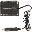 Max. Output Current: 5A (Cigarette Socket), 2.4A (USB)