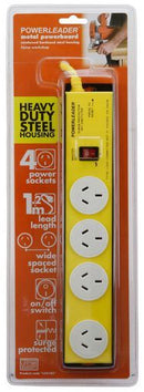 POWERLEADER Heavtduty Steel Housing 4 Way Surge Protect Powerboard Power Switch
