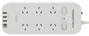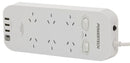 This 6-way powerboard features two switched rows of three sockets, surge and overload protection, two USB-A ports and one USB Type-C port with Power Delivery (PD) to charge your power hungry USB devices. It has a 1m long power lead. Gloss white in colour.