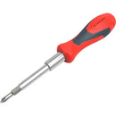 The Crescent Quick Connect Multi-Bit Driver replaces the need to carry multiple fastening tools. Integrated into the corrosion resistance polished chrome shaft are three common size nut divers and 2 dual-sided premium grade Phillip and slotted bits. 2 unique features make the quick convert mufti driver a must have tool you'll use every day. First, is the T-handle conversion that significantly increases torque. In a single tool, you have the speed of a straight handle and the power of a t-handle. Second, is a built in Crescent universal socket that conforms to any fastener shape from 1/4 in. - 1/2 in. The dual material cushion handle provides a non-slip grip and resists oil and grease.