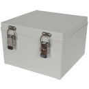 Gasket seals, stainless steel hardware and IP66 rated for use in industrial, marine and other harsh environments. The closures have a locking catch that engages to positively hold the lid closed until disengaged. Each enclosure includes a 1.8mm galvanised chassis for mounting DIN rail, switchgear, relays or circuit breakers. A size for any application.