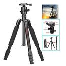 - The tripod height can be easily adjusted from 56.5cm to 164cm by adjusting twist locking knobs