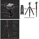 - With panoramic ball head on top, the tripod supports 360° panoramic photography, vertical