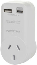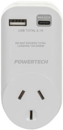 Turns a standard mains power point into a USB charger while still keeping the mains socket available. The USB-A port and USB Type-C port provide up to 3.1A (shared) to charge power hungry-devices.