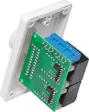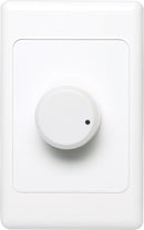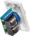This stereo volume control is rated at 100 watts (50W per channel). It features selectable impedance matching, allowing up to 8 pairs of speakers to be controlled. Includes 11 settings plus Off. Connections are made via a pluggable terminal block. 60mm mounting depth.