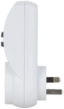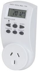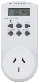 | More advanced than a mechanical timer. You can set it for time of day and also day of the week. The integrated LCD shows current status and guides you through setup. There’s also an override on/off/auto selection. If the power goes out, an internal backup battery will retain your settings and accurate time for several days (though obviously won’t provide power to your appliance while power is not available). Also includes random mode to switch on lamps or radios to give the impression you’re home, while away on holidays.