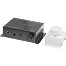 This unit is an excellent way to add an additional zone to an existing system. Compact 15w RMS stereo amplifier withselectable 3.5mm stereo or microphone inputs. Remote wired volume control.
