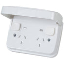Double Mains Outlet GPO Socket IP65 Weatherproof Clipdown Cover Pilot Lights