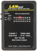 Tests UTP/STP/Coaxial/Modular network cables by manually or automatically detecting missing or disordered wiring, and open or short circuits. It can quickly read the correct pin configuration of 10Base-T cable, 10Base-2 cable, RJ45/RJ11 modular cables, 258A, TIA-568A/568B and Token Ring cable etc. by comparing one transmitting end to the corresponding receiving end.